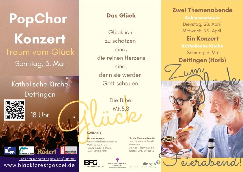 Den Abschluss der Veranstaltungsreihe bildet am Sonntag, 3. Mai, ein Konzert des Black Forest Gospel Popchors, der die Reihe musikalisch abrundet.