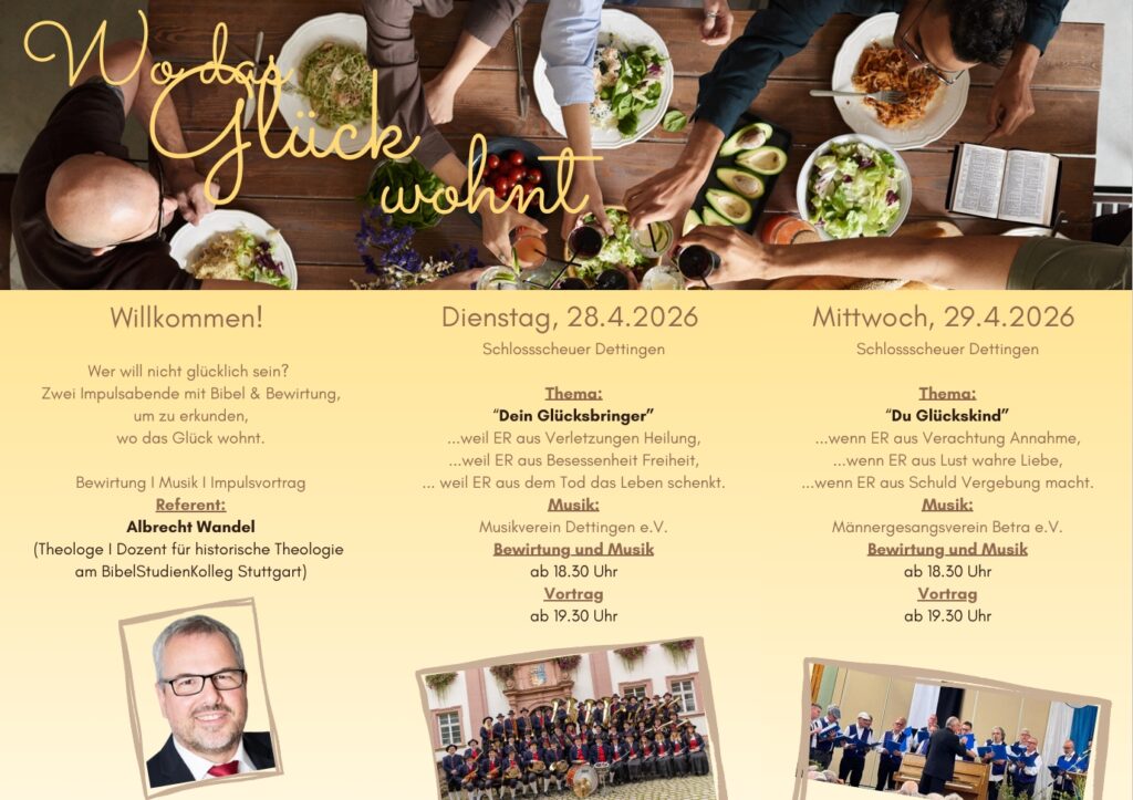 Im Rahmen einer besonderen Veranstaltungsreihe unter dem Motto „Feierabend“ laden die Themenabende zum Thema Glück in die Schlossscheuer in Dettingen ein.