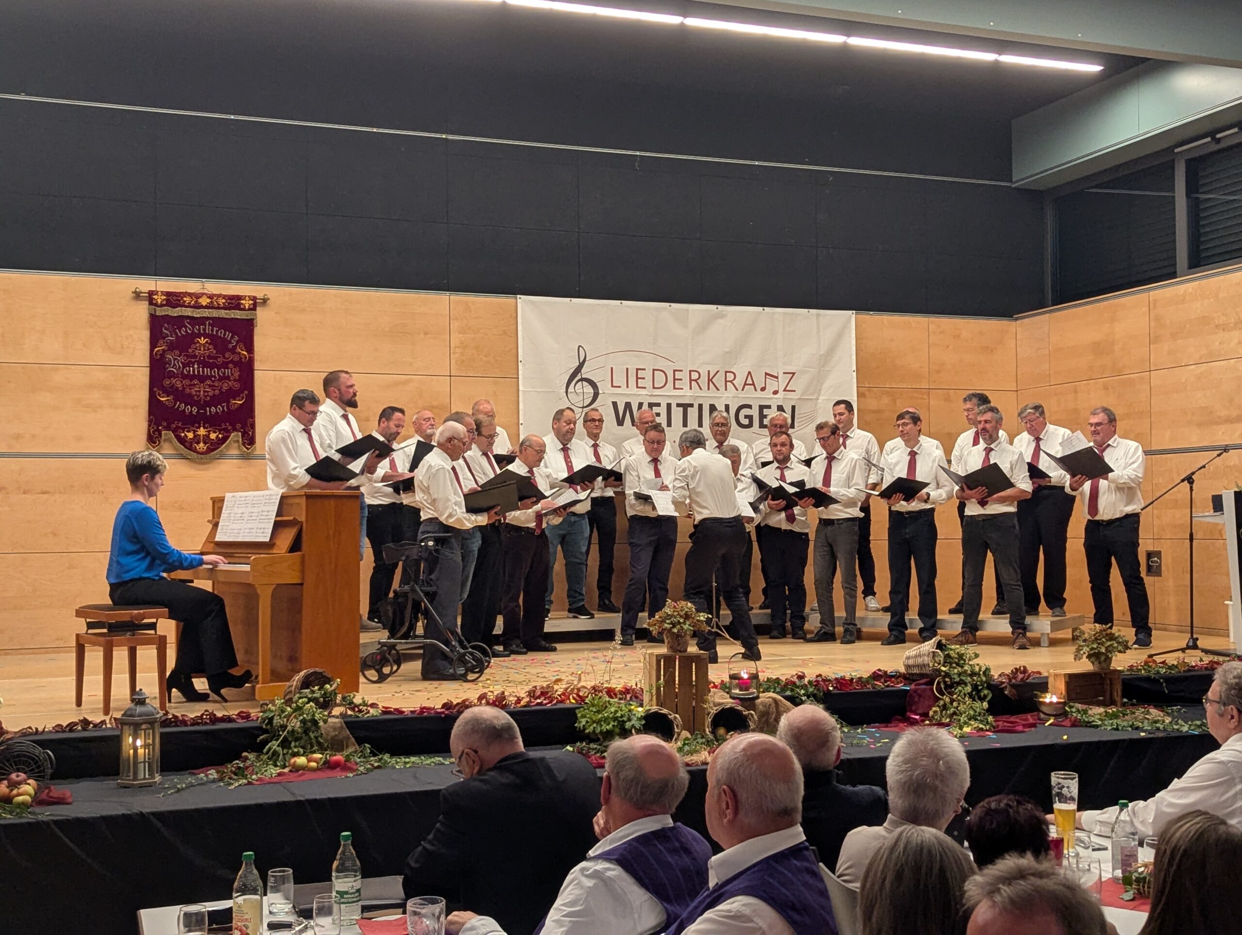 Am Samstag, den 4. Oktober 2025, fand in der festlich geschmückten Buchsteighalle Weitingen der diesjährige Liederabend des MGV Liederkranz Weitingen statt. In herbstlicher Atmosphäre und vor zahlreichem Publikum präsentierten die teilnehmenden Chöre ein abwechslungsreiches Programm mit traditionellen und modernen Liedern.